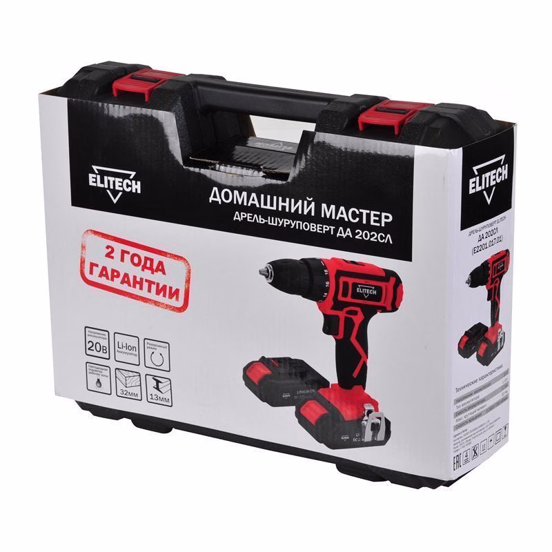 Аккумуляторная дрель-шуруповёрт Elitech ДА 202СЛ (E2201.017.01)