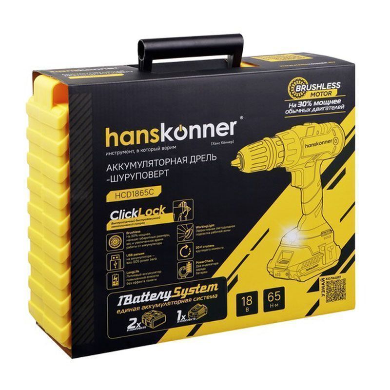 Аккумуляторная дрель-шуруповёрт Hanskonner HCD1865C