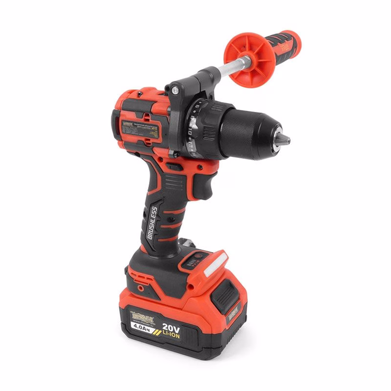 Эргономичная рукоятка с мягкими накладками обеспечивает комфортный и уверенный хват. Переключатель реверса расположен удобно для большого пальца, что позволяет мгновенно менять направление вращения. Двухскоростной редуктор даёт гибкость в выборе режима: низкие обороты для закручивания шурупов, высокие — для сверления. Индикатор заряда батареи поможет своевременно спланировать подзарядку.