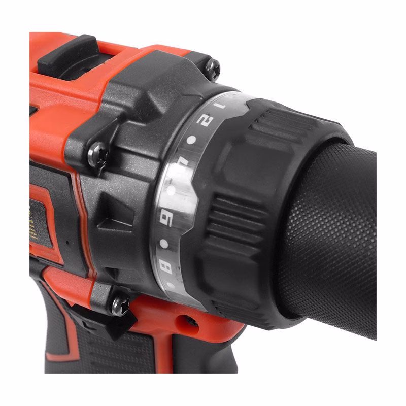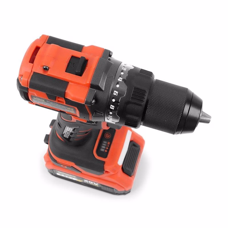 Эргономичная рукоятка с мягкими накладками обеспечивает комфортный и уверенный хват. Переключатель реверса расположен удобно для большого пальца, что позволяет мгновенно менять направление вращения. Двухскоростной редуктор даёт гибкость в выборе режима: низкие обороты для закручивания шурупов, высокие — для сверления. Индикатор заряда батареи поможет своевременно спланировать подзарядку.