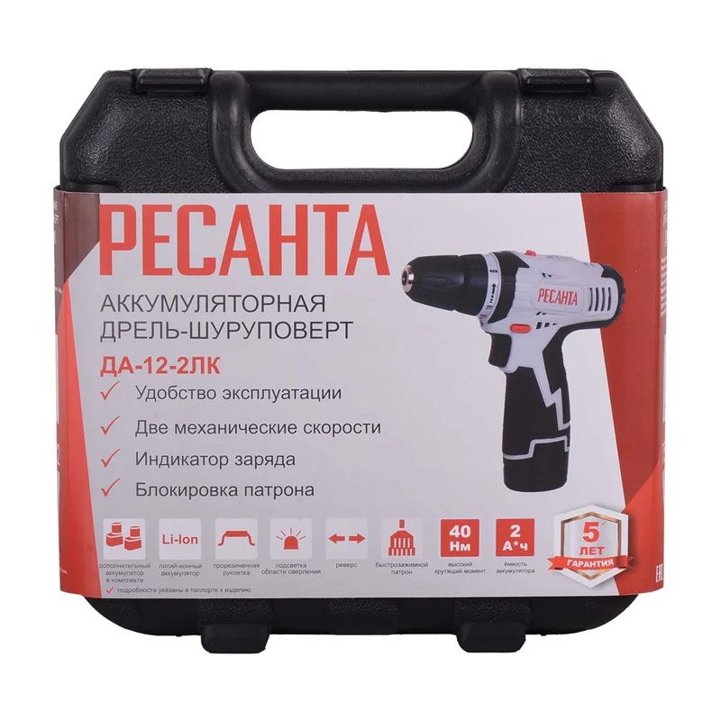 Аккумуляторная дрель-шуруповёрт Ресанта ДА-12-2ЛК 75/14/2