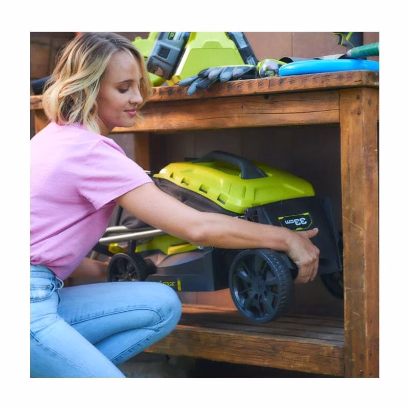 Аккумуляторная газонокосилка RYOBI OLM1833B ONE+ представляет собой маневренное устройство, которое обладает прекрасно продуманной конструкцией. Оно позволяет достаточно быстро удалять траву с различных площадок, не прикладывая для этого практически никаких усилий. Высота скашивания у предлагаемой техники может иметь величину от 25 до 65 мм. Что касается ширины резания, то она составляет 33 см.