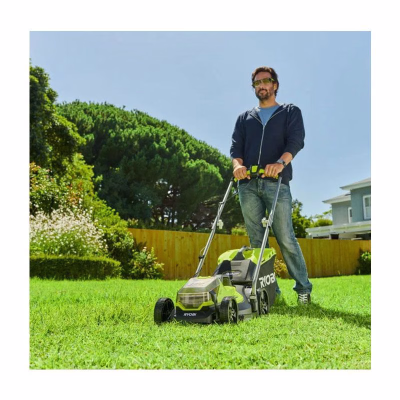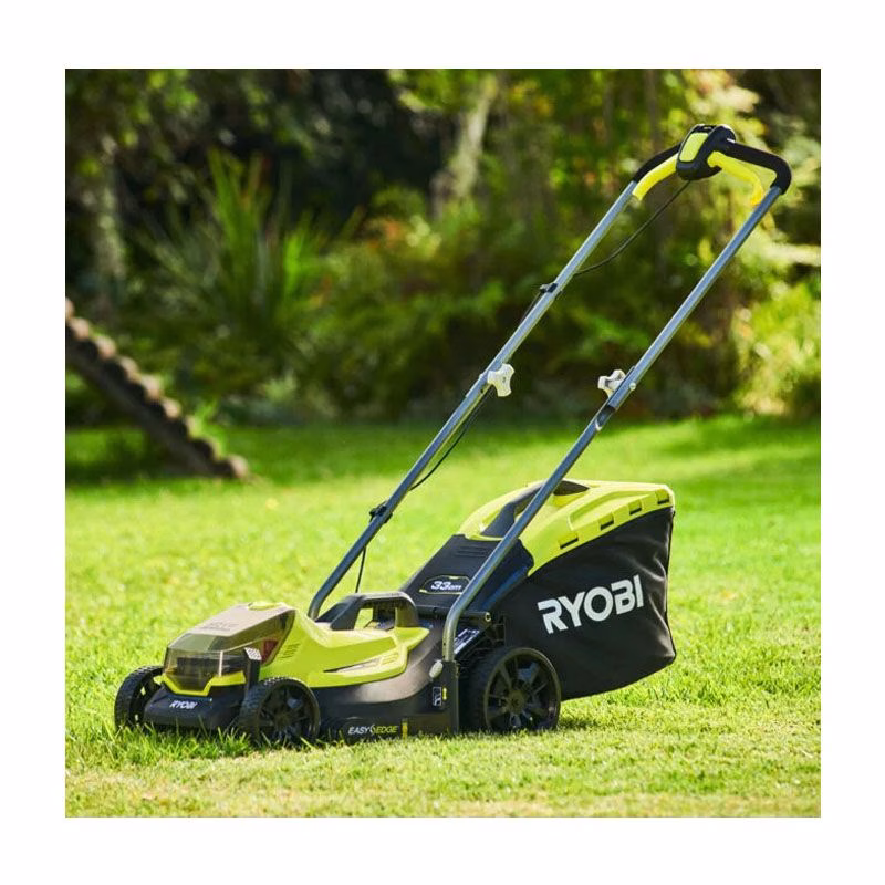 Аккумуляторная газонокосилка RYOBI RLM18X33B-40 отличается максимальной маневренностью при выполнении работ в саду, например, при уходе за газоном. За питание данного несамоходного технического устройства отвечает литий-ионная аккумуляторная батарея на 18 В емкостью 4,0 А/ч, которая входит в комплект поставки, как и зарядное устройство. Режущее приспособление представлено стальным ножом, обеспечивающим ширину скашивания 330 мм. Высота покоса варьируется в пределах от 25 до 65 мм. Рассматриваемая модель также укомплектована заглушкой для мульчирования и контейнером для сбора травы объемом 35 л.