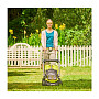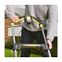 - Для удобства хранения предусмотрены складывающиеся контейнер для травы и рукоятка.