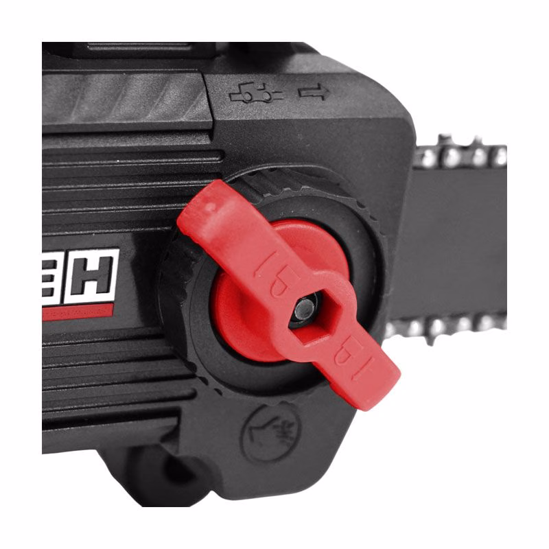 - Система автоматической смазки цепи своевременно подаёт масло на шину, что гарантирует плавный ход и долгий срок службы режущих элементов.