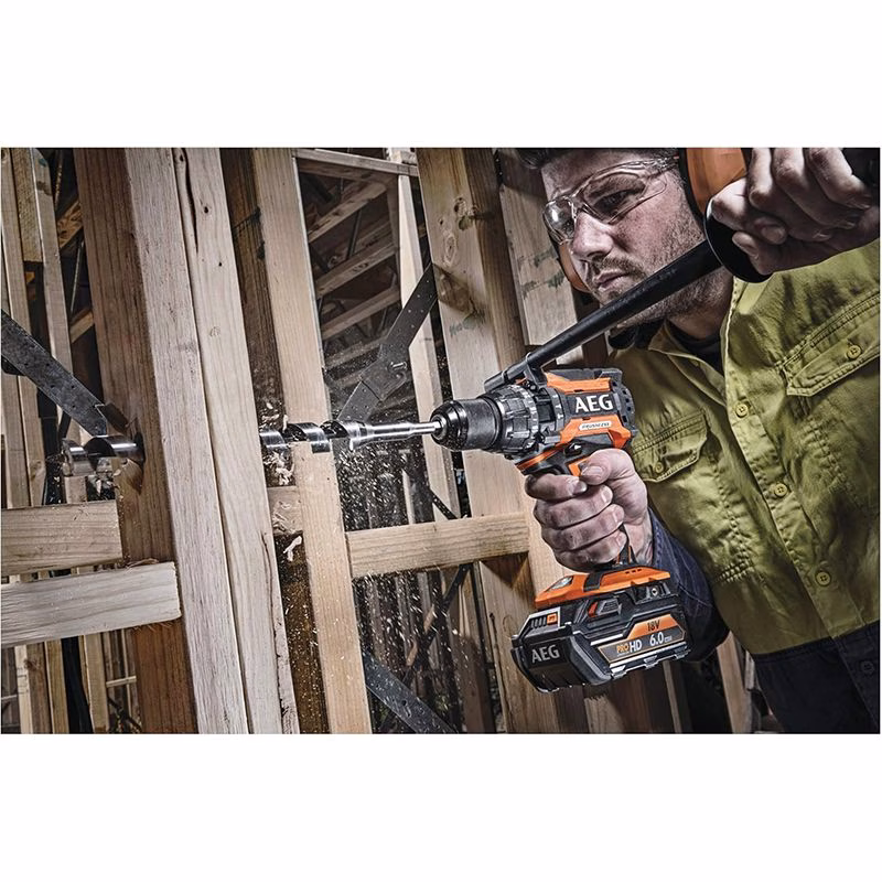 Ударная дрель-шуруповёрт AEG BSB18BL LI-602C – практичный рассчитанный на эксплуатацию в самых разных условиях агрегат. Он позволяет эффективно и без существенных затрат времени производить работы с крепежными изделиями и создавать отверстия в различных материалах. Благодаря компактности это устройство можно использовать в несколько ограниченном пространстве. Диаметр сверления для дерева у данной техники имеет величину 100 мм, а для стали 13 мм.