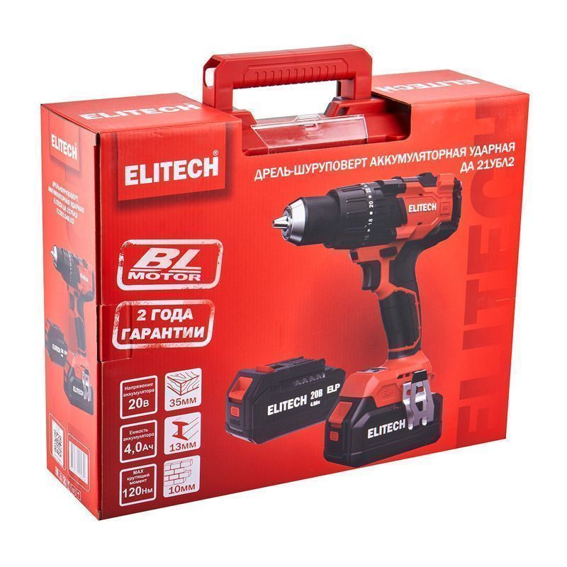 Аккумуляторная ударная дрель-шуруповёрт Elitech ДА 21УБЛ2 (E2201.048.02)