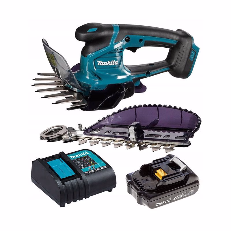 Ножницы для травы Makita DUM604SYX предназначены для ухода за садом, в частности, для стрижки травы, а также облагораживания кустарников. Источником питания данной модели Макиты служит стандартная аккумуляторная батарея литий-ионная, напряжение которой равно 18 Вольт. Ширина резки составляет 160 мм. Вес рассматриваемого инструмента не превышает 1,4 кг. Помимо быстросъемных ножей, в комплектацию входят контейнер для травы, контейнер для веток, а также соответствующие чехлы.