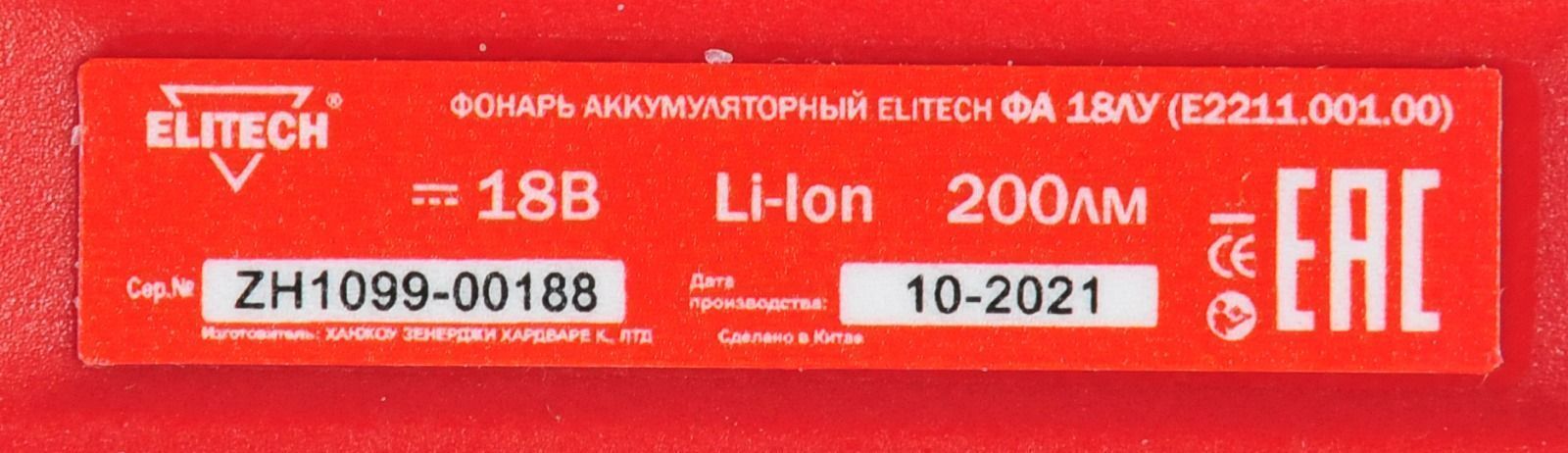 Аккумуляторный фонарь Elitech ФА 18ЛУ ( E2211.001.00)