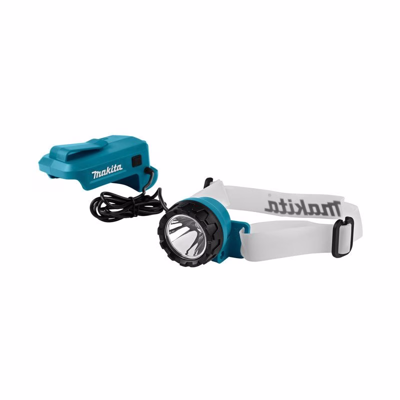 Аккумуляторный фонарь Макита для крепления на голове, совместимый с аккумуляторами LXT® 14,4 В и 18 В. Держатель батареи можно носить на поясном ремне. Также может использоваться как стационарный светильник, если присоединить лампу к держателю батареи. Время работы от аккумулятора 5,0 А·ч — около 33 ч.