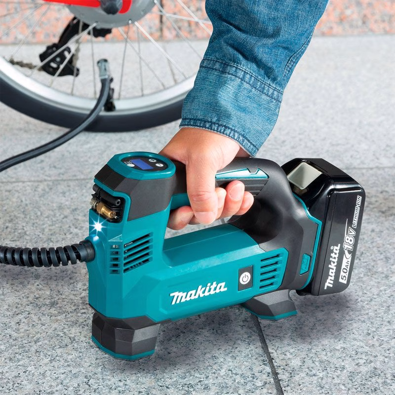 Аккумуляторный компрессор Makita DMP180Z используется для накачивания шин. Модель оптимальна для частного использования в гараже или в дороге. Доступное давление - до 8,3 бар. Работает от батарей на 18В. Компактная, удобная и простая модель.