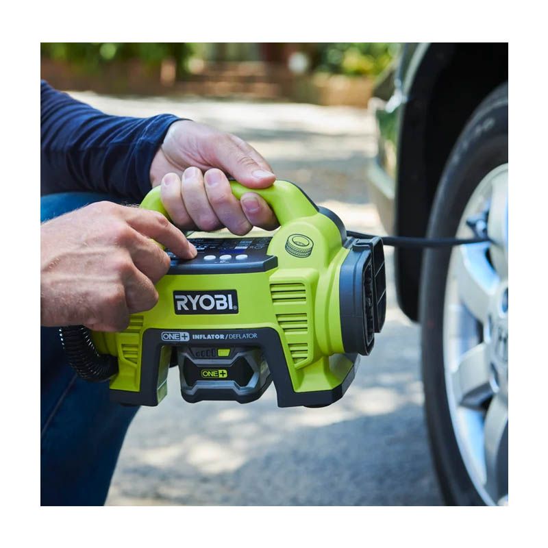 Аккумуляторный компрессор RYOBI R18I-0 – удобное в использовании и в транспортировке устройство. Применяется оно преимущественно для накачки шин автомобилей, велосипедов и мотоциклов, но может быть полезным также владельцам плавательных кругов, лодок, матрасов. Максимальное давление у данной техники имеет величину 10,3 бар. Функционирует она от батарей Li-ion типа.