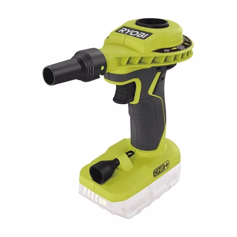 Аккумуляторный компрессор RYOBI R18VI-0 применяется для накачки надувных лодок и матрасов, мячей, детских бассейнов. Также может использоваться в качестве воздуходувки в мастерских и цехах для поверхностной уборки рабочей зоны от мусора, стружки и пыли. Работает от литий-ионных аккумуляторов на 18В.