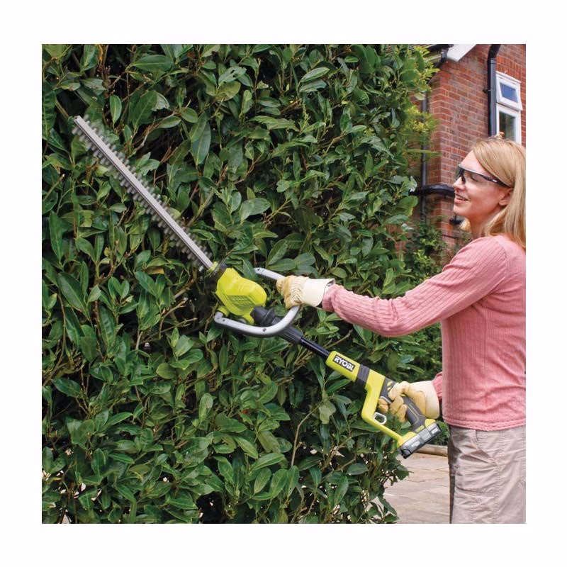 Аккумуляторный кусторез RYOBI OHT1850X предназначен для среза живой изгороди, придания ей нужной формы, вырезания зелёных скульптур. Инструмент популярен у служб озеленения и благоустройства города, а также у садовников. Может применяться в бытовых условиях для ухода за придомовой территорией. Работает от батарей Li-Ion на 18В.