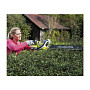 Аккумуляторный кусторез RYOBI OHT1855R – практичный хорошо подходящий для применения в разных условиях агрегат. Используется он преимущественно для формирования живых изгородей, но может быть полезным и во многих других случаях, в которых необходимо производить обрезку небольших веток. Длина лезвия у предлагаемой техники составляет 55 см. Режущая способность у нее имеет величину 22 мм. Функционирует это устройство от батарей напряжением 18 В.