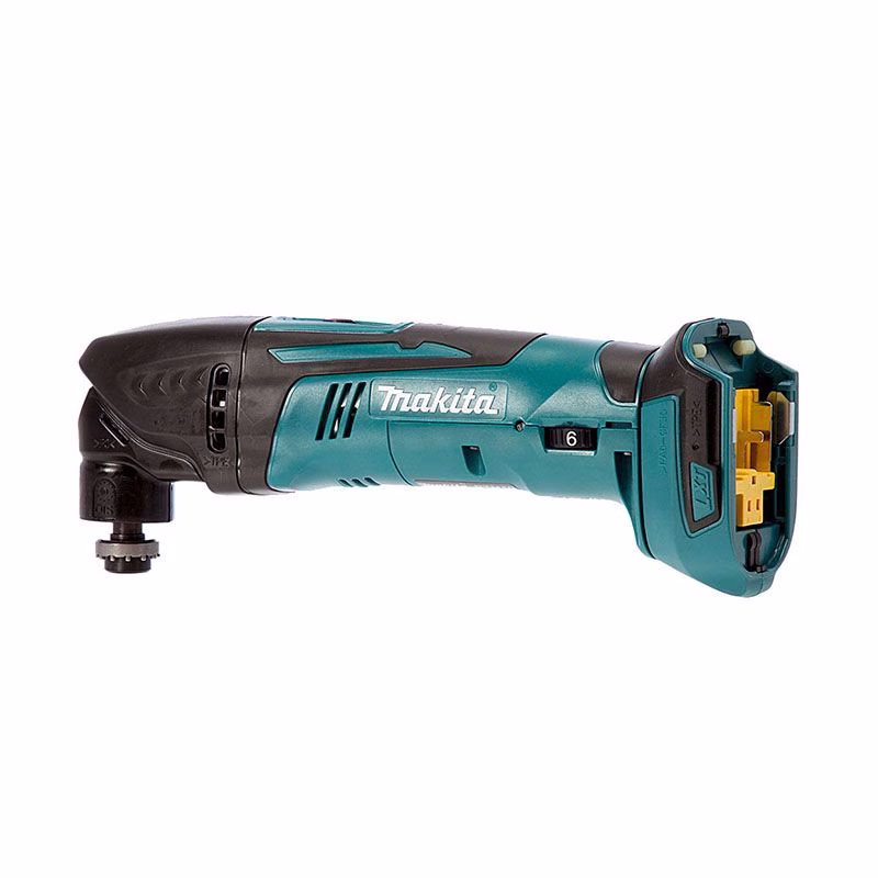 Аккумуляторный реноватор Makita DTM50Z – это профессиональный мультитул, применяемый в сфере ремонта и строительства, изготовления элементов интерьера, для выполнения операций шлифовки, полировки, зачистки и обычной резки различных материалов. Для решения определенных задач требуется лишь подобрать соответствующую насадку. Вес технического устройства не превышает 1,9 кг. Его питание осуществляется от литий-ионного аккумулятора напряжением 18 Вольт и емкостью 3.0 А/ч, который не предусмотрен в комплекте поставки, как и зарядное устройство, а также набор оснастки. На холостом ходу выполняется от 6 000 до 20 000 об/мин.