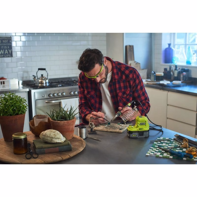 Аккумуляторный паяльник Ryobi R18SOI-0 предназначен для пайки проводов и радиодеталей. Применяется в ремонте смартфонов, компьютеров, ноутбуков. Может использоваться частными мастерами в пирографии, а в быту или автосервисах - для мелкого ремонта трещин на бампере. Разработан, в первую очередь, для бытового и любительского применения, но для профессиональных целей тоже подходит. Работает от литий-ионных батарей на 18В.
