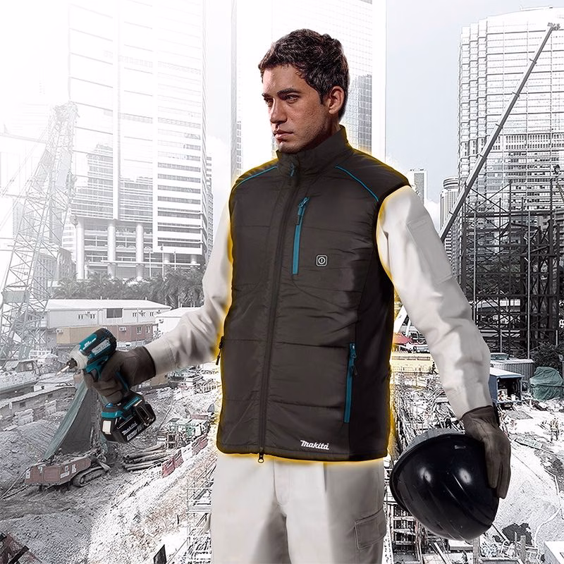 Аккумуляторный жилет Makita DCV202ZXL – это жилет нового поколения, в котором предусмотрены элементы подогрева для работы в условиях холодной рабочей среды. За подогрев отвечают литий-ионные аккумуляторы типа слайдер напряжением 14.4/18 В и емкостью 6.0 / 5.0 / 4.0 / 3.0 / 2.0 / 1.5 А/ч, которые не включены в комплект поставки, как и устройство для их заряжания. Зоны подогрева включают правый и левый передние карманы, а также спину и шею. Для обогрева можно выбрать один из трех режимов, обозначенных соответствующим светодиодом. Время работы (с аккумулятором емкостью 5,0 А/ч) при низком рабочем режиме составляет до 35 ч, при среднем – до 20 ч, а при высоком режиме – до 10 ч. Жилет массой 0,5 кг выполнен из полиэстера, его размер – XL.