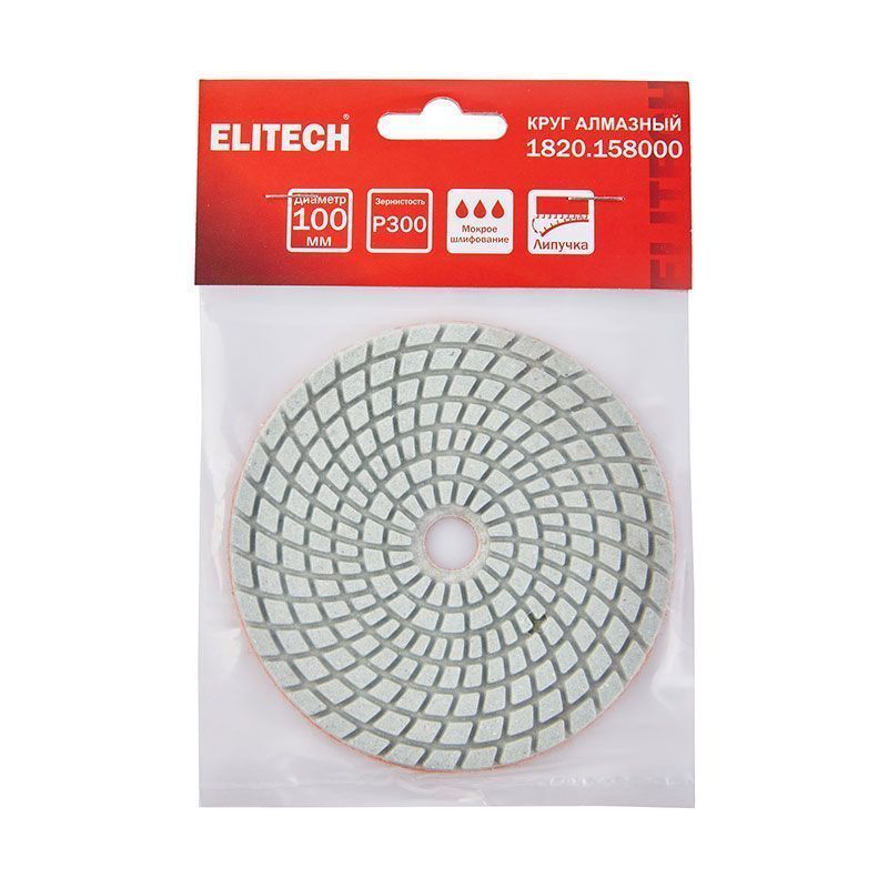 Алмазный полировальный диск на липучке Elitech 1820.158000 — это профессиональный инструмент для финишной обработки каменных поверхностей. Он обеспечивает высокую эффективность и превосходное качество результата при мокрой шлифовке и полировке.