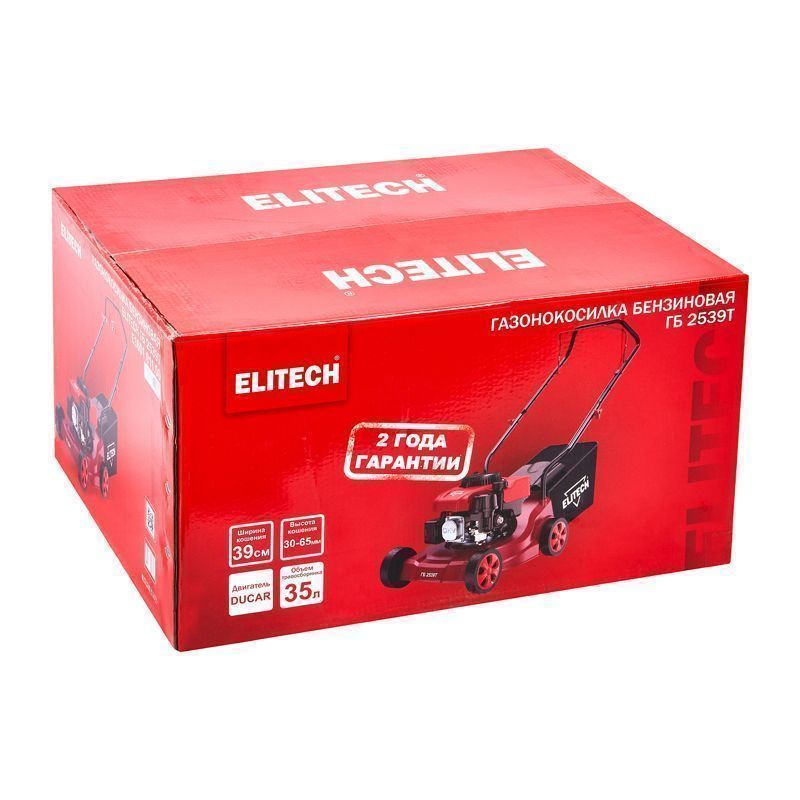 Бензиновая газонокосилка Elitech ГБ 2539Т (E1601.011.00) разработана для приведения в порядок лесопарковых зон и дворов многоквартирных домов. Удобна для скашивания травы вдоль тротуаров и дорог. Может использоваться в быту - на придомовой территории частных домов и коттеджей, а также дачных домиков. Подходит для ровных поверхностей без ямок и кочек. Бензогазонокосилка работает на бензине АИ-92 с добавлением масла 2Т. Ширина скашивания составляет 390 мм.