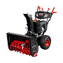 - За счёт ручного стартера можно запускать снегоуборщик без дополнительных приспособлений, а наличие электрозапуска позволяет включить технику одной кнопкой, не прилагая даже минимальных усилий.