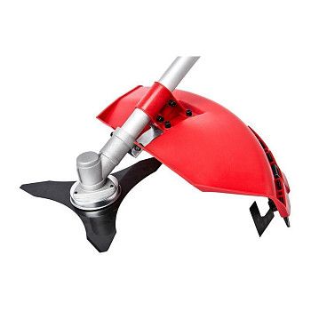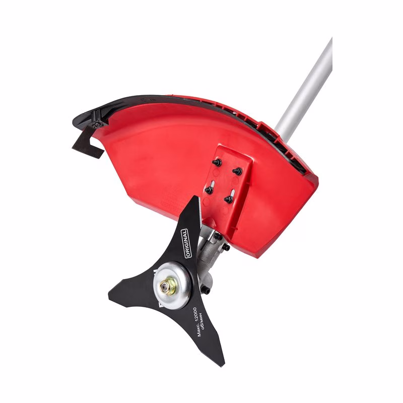 - Универсальная режущая оснастка: В комплекте идёт трёхлопастной нож для грубой травы и побегов, а также катушка с леской для деликатного покоса газона.