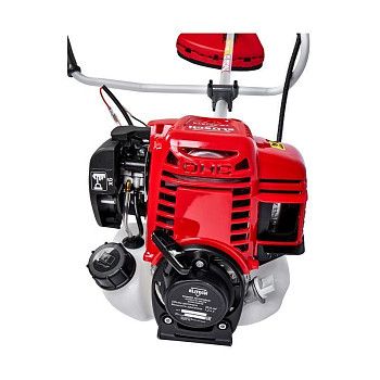 - Мощность и производительность: Двигатель мощностью 0,9 кВт (1,2 л.с.) легко справляется с интенсивными нагрузками и густой растительностью.