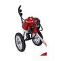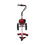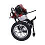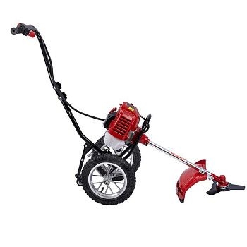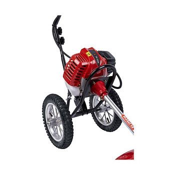 - Мощный двигатель. Аппарат оснащён двухтактным двигателем с мощностью 1.77 кВт, что обеспечивает стабильную работу под высокой нагрузкой и позволяет справляться с плотной растительностью.