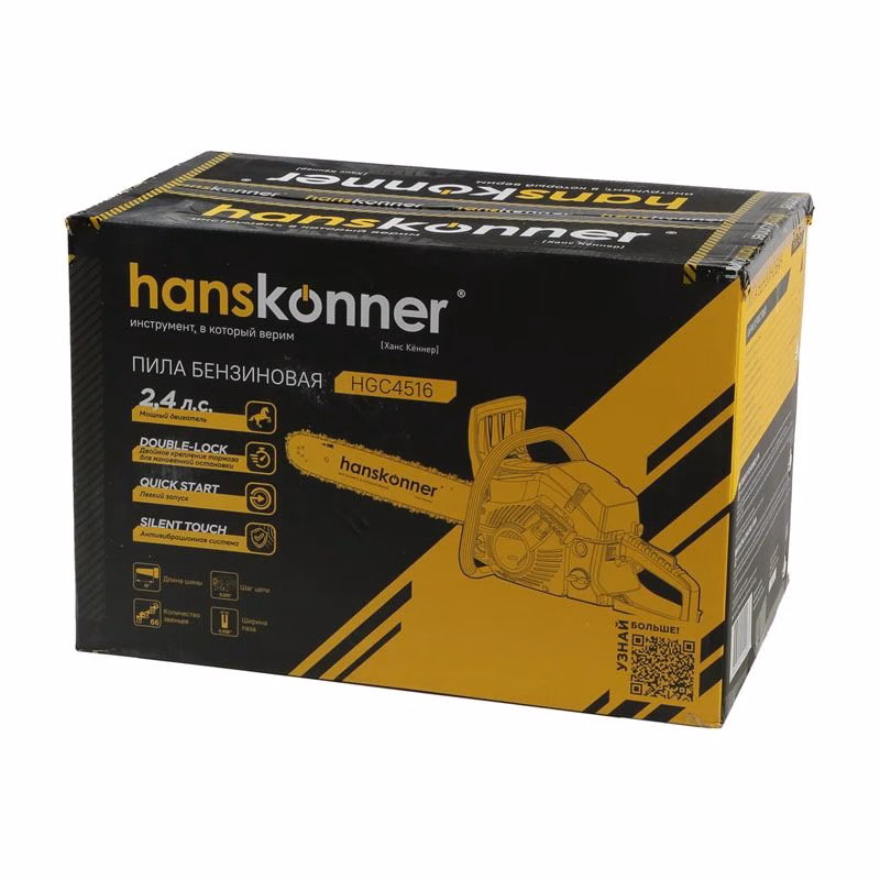 Бензопилы Hanskonner традиционно ценятся за качественную сборку и применение износостойких материалов. Модель Хансконнер HGC4516 оснащена мощным двухтактным двигателем, который легко запускается в любую погоду. Профессиональная цепная пила комплектуется всеми необходимыми системами для долгой службы: фильтром тонкой очистки воздуха, предотвращающим попадание пыли в цилиндропоршневую группу, и системой подачи цепи с плавной регулировкой натяжения.