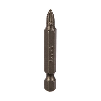 Бита изготовлена из прочной хромованадиевой стали (CrV), что гарантирует высокую стойкость к излому и износу. Хвостовик выполнен в виде одностороннего шестигранника размером 1/4 дюйма, что обеспечивает надёжную фиксацию в любом шуруповёрте или отвёртке с магнитным или быстрозажимным патроном. Общая длина биты составляет 50 мм, что оптимально для работы в труднодоступных местах.
