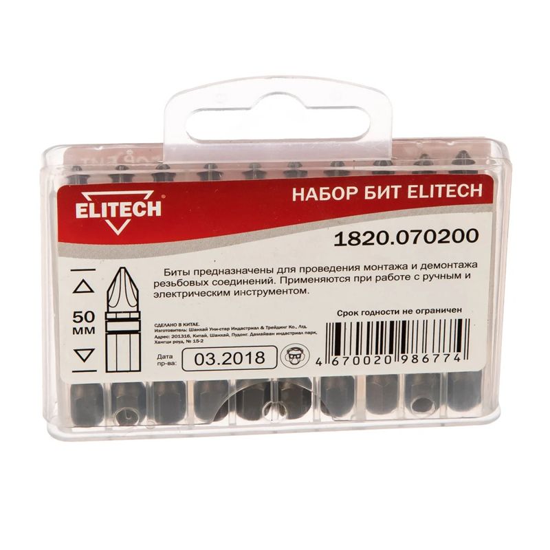 Биты Pozidriv Elitech 1820.070200