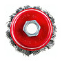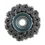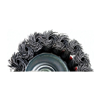 Щётка изготовлена из прочной кручёной стальной проволоки, которая обеспечивает высокую абразивность и износостойкость. Такая проволока эффективно снимает даже самые сложные загрязнения, сохраняя при этом свою форму и рабочие свойства в течение длительного времени. Диаметр рабочей части щётки составляет 65 мм, что является оптимальным размером для выполнения большинства задач, сочетая хорошую производительность и удобство работы в труднодоступных местах. Толщина используемой проволоки — 0,5 мм, что гарантирует достаточную жёсткость и агрессивность очистки без излишнего повреждения основы.