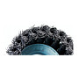 Изделие изготовлено из прочной кручёной стальной проволоки, которая уложена в плотную чашеобразную форму диаметром 80 мм. Такая конструкция обеспечивает агрессивный зачистной эффект и высокую производительность. Использование проволоки толщиной 0,5 мм даёт оптимальный баланс между жёсткостью и эластичностью, что позволяет эффективно снимать загрязнения, не повреждая чрезмерно основную поверхность. Для быстрой и безопасной установки на шлифмашину щётка оснащена стандартным креплением типа M14.