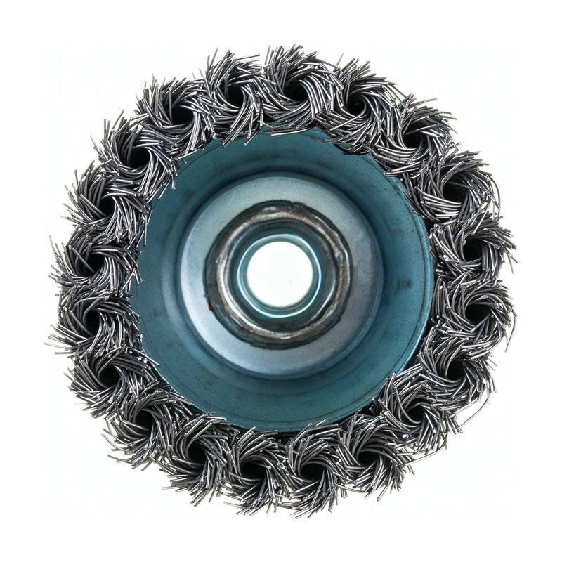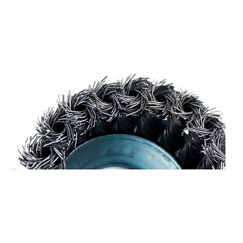 Изделие изготовлено из прочной кручёной стальной проволоки, которая уложена в плотную чашеобразную форму диаметром 80 мм. Такая конструкция обеспечивает агрессивный зачистной эффект и высокую производительность. Использование проволоки толщиной 0,5 мм даёт оптимальный баланс между жёсткостью и эластичностью, что позволяет эффективно снимать загрязнения, не повреждая чрезмерно основную поверхность. Для быстрой и безопасной установки на шлифмашину щётка оснащена стандартным креплением типа M14.