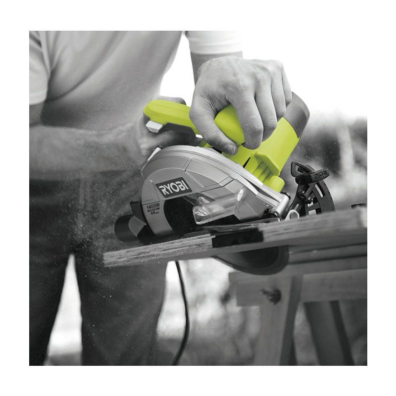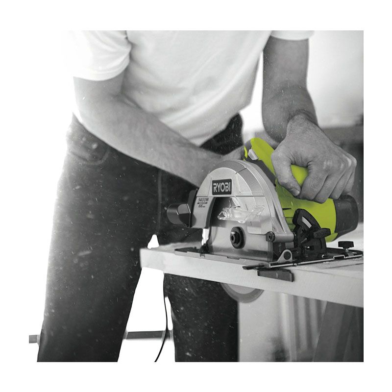Циркулярная пила RYOBI RCS1400-G – производительный по параметрам идеально подходящий большому количеству пользователей инструмент. Применяется он для выполнения работ по резу древесины. Скорость без нагрузки у этой техники достигает 5000 оборотов за минуту. Диаметр диска у нее 190 мм. Максимальная глубина реза, которую может обеспечить данный агрегат, составляет 66 мм под прямым углом и 50 мм под углом 45 градусов.