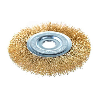 Щётка изготовлена из высококачественной латунированной витой проволоки, что обеспечивает её долговечность и эффективную работу. Латунирование снижает искрообразование, что повышает безопасность при работе с воспламеняющимися материалами. Диаметр рабочей части составляет 150 мм, что позволяет охватывать значительную площадь за один проход, экономя время. Толщина каждой проволочки — 0.35 мм, это оптимальный баланс между жёсткостью, необходимой для снятия плотных слоёв, и эластичностью для щадящего воздействия на основу.