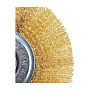 Конструкция и материалы Дисковая щётка Elitech 1820.074900 Основу рабочей части составляет витая проволока из латуни. Этот материал обеспечивает оптимальный баланс между твёрдостью и упругостью, что позволяет эффективно счищать загрязнения, не повреждая основу металла. Латунированное покрытие предотвращает искрообразование, что повышает безопасность работ. Крепление на 22.2 мм является стандартным и подходит для большинства бытовых и профессиональных угловых шлифмашин.