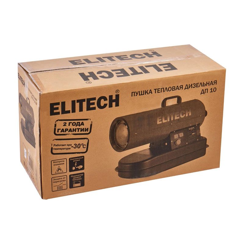 Дизельная тепловая пушка Elitech ДП 10 сочетает в себе высокую производительность, продуманную конструкцию и удобство. Она станет выгодным вложением для профессионалов, чья деятельность связана с необходимостью быстрого и мощного обогрева больших площадей.