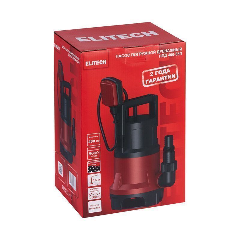 Дренажный насос Elitech НПД 400-35П сочетает в себе достаточную производительность, автономность работы благодаря поплавковому выключателю и продуманную конструкцию. Он является практичным и доступным решением для борьбы с излишками грязной воды на даче, в частном доме или во время ремонтно-строительных работ.