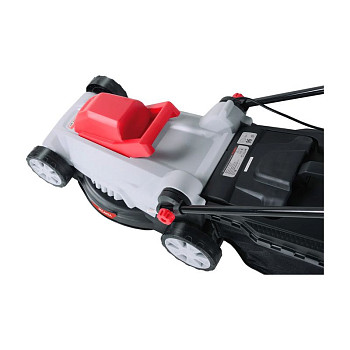 - Ширина обработки: Стальная дека с шириной скашивания 38 см обеспечивает хороший баланс между манёвренностью и производительностью, сокращая время работы.