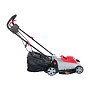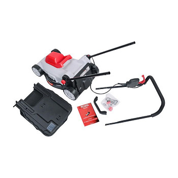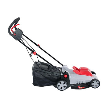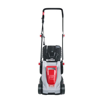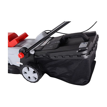 - Удобство эксплуатации: Мягкий травосборник объёмом 35 литров легко снимается и очищается. Эргономичная ручка регулируется по высоте, подстраиваясь под рост пользователя.