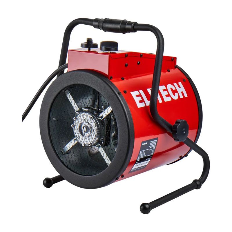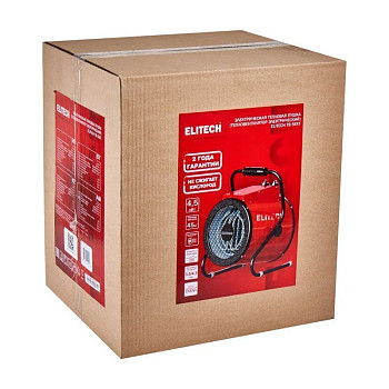 Электрическая пушка Elitech ТВ 5ЕКТ – эффективное сравнительно недорогое устройство, которое рассчитано на то, что быстро повышать температуру в помещениях, а затем поддерживать ее на необходимом уровне. Оно предназначено для применения в комнатах небольшой площади. Максимальная мощность у данного агрегата для обогрева имеет величину 4,5 кВт, а поток воздуха достигает 400 куб.м/ч.