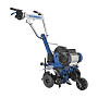 - В базовую комплектацию входит всё необходимое для начала работы: 2 острых фрезы, 2 боковых диска для аккуратной обработки, регулируемый сошник для установки глубины, панель оператора и транспортировочное колесо для удобного перемещения по участку.