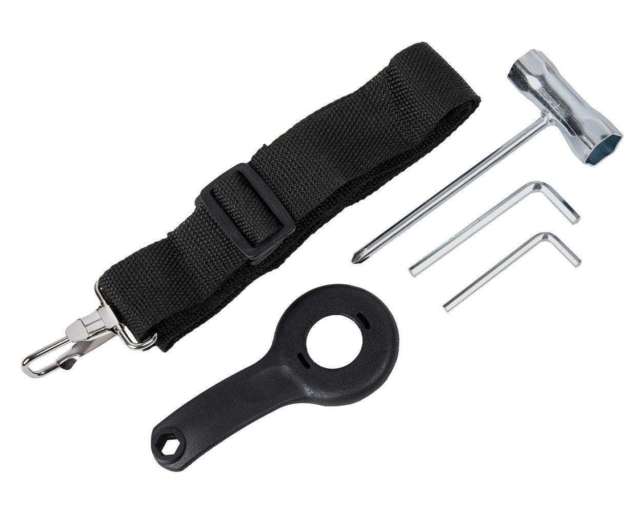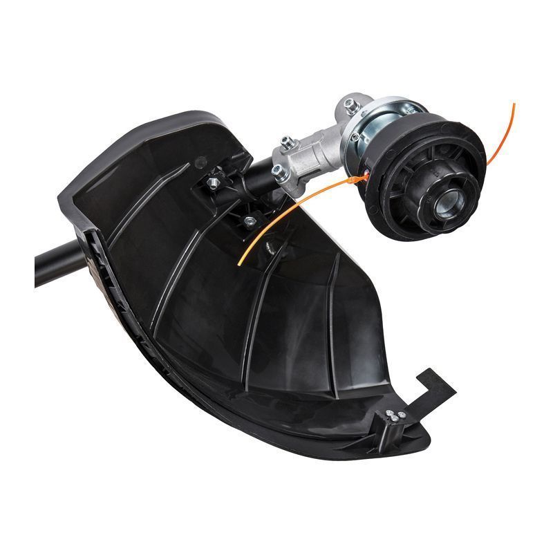 - Наплечный ремень позволяет правильно распределить вес триммера, что уменьшает усталость.