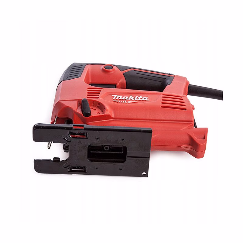 Электрический лобзик Makita M4301 – недорогой по параметрам идеально подходящий многим пользователям агрегат. Применяется он для выполнения работ по распилу различных материалов. Длина хода у данной техники имеет величину 18 мм, а число ходов за минуту есть возможность регулировать от 0 до 3100. Показатель мощности у предлагаемого инструмента 450 Вт. Глубина распила для древесины у него составляет 65 мм, а для стали 6 мм.
