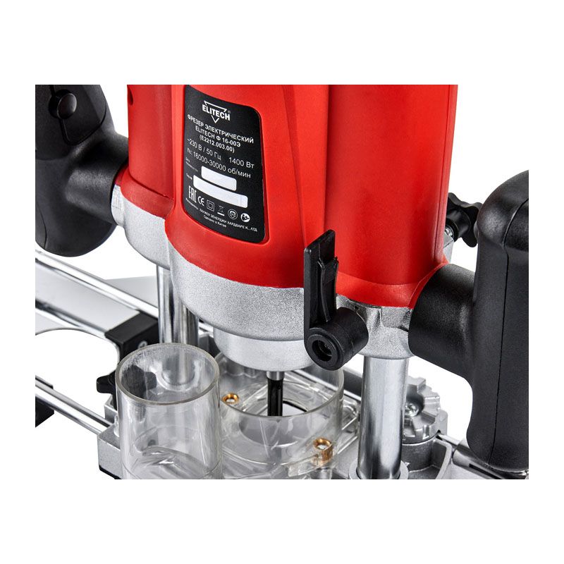 Конструкция инструмента продумана для комфорта пользователя. Параллельный упор с микрометрической подстройкой обеспечивает точное ведение вдоль кромки заготовки. Система плавного погружения с точной настройкой глубины и стопором облегчает работу. Для подключения пылесоса предусмотрен патрубок, помогающий поддерживать чистоту на рабочем месте. Всё это делает фрезер Elitech Ф 16-00Э надёжным и предсказуемым инструментом, который справится с поставленными задачами на высоком уровне.