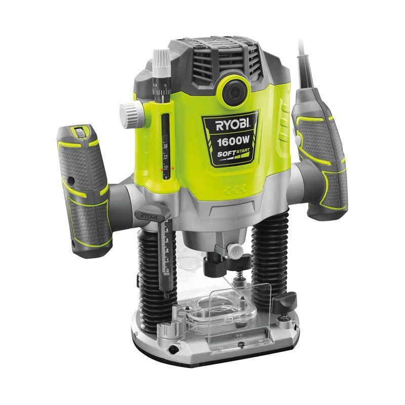 Фрезер RYOBI RRT1600-K предназначен для фигурного выпиливания, обработки кромок, вырезания пазов и рисунков в дереве. Модель Риоби массой 7,6 кг развивает мощность до 1600 Вт. Скорость без нагрузки составляет от 6000 до 22000 об/мин. В комплект поставки, помимо самого фрезера, также включены: набор из пяти фрез, параллельная направляющая, шаблонная направляющая, патрубок пылеотвода, цанги на 6, 8 и 12 мм, ключ.