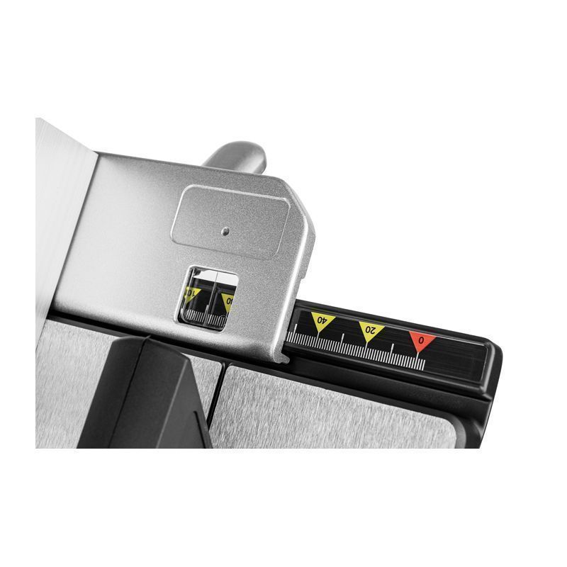 - Литая платформа с разметкой и надёжными упорами гарантирует точность позиционирования.