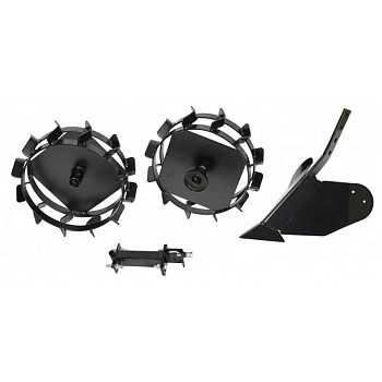 - КомплектацияКолеса грунтозацепы, сцепка, плуг окучник