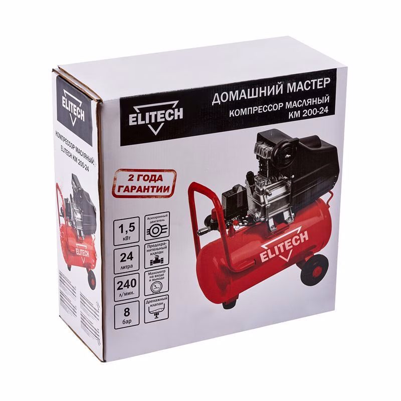 Компрессор Elitech КМ 200-24 — это выверенный баланс мощности, долговечности и практичности. Он станет вашим надёжным помощником, готовым к ежедневной работе и способным обеспечить сжатым воздухом профессиональный и полупрофессиональный инструмент без простоев и лишних хлопот.